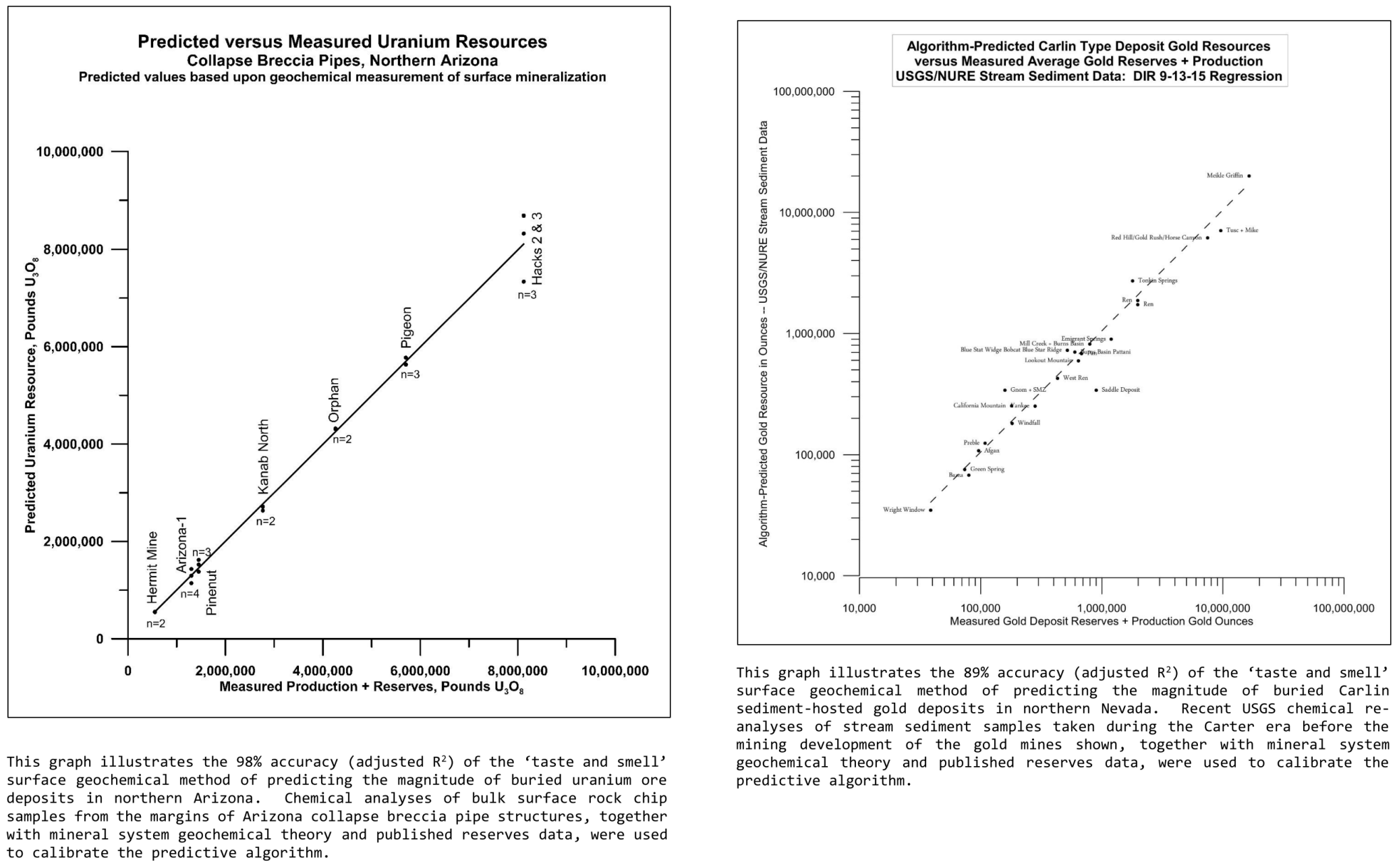 It is critical to understand that this method stands on the shoulders of the previous conventional exploration and mining work of the industry. Without the previous orebody discoveries and the data revealed by those discoveries and mine developments, this new exploration methodology could not be made to work. Application of geochemical mineral systems theory is especially important as it serves to drastically reduce the number of known and well-examined mineral deposits required for valid causal linear regression of the primary geochemical system factors producing the orebodies sought. In the northern Arizona uranium-mineralized collapse breccia pipe case, for example, only seven (7) known and well-studied uranium ore deposits were required to generate accurate resource and depth-to-mineralization predictive causal algorithms for this deposit type and its containing northern Arizona mineral province.